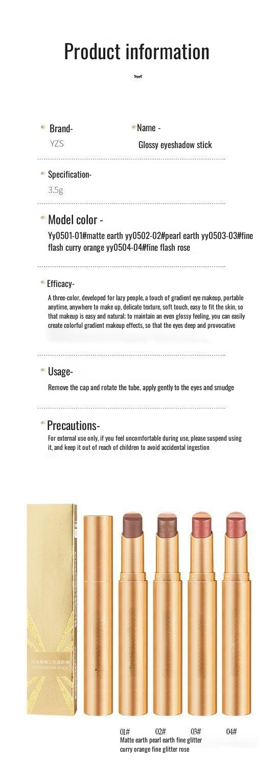 Lazy eyeshadow stick three colors one touch matte earth color concealer light makeup three in one wa